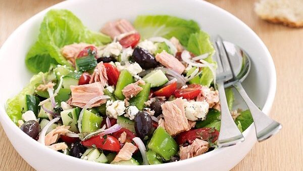 سلطة التونة بالخضار | تعتبر التونة من أكثر أنواع الأطعمة التى تحتوى على فوائد عديدة جدًا أهمها أنها المصدر الأساسى للأوميجا 3 التى تصلح لمرضى القلب والكوليسترول طبق اليوم هو سلطه التونه بالخضار وصفة سهلة وسريعة وتحتوي على الكثير من العناصر الغذائية اللازمة للجسم.